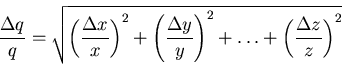 and the error on q is propagated from the errors on x, y, ... , and z